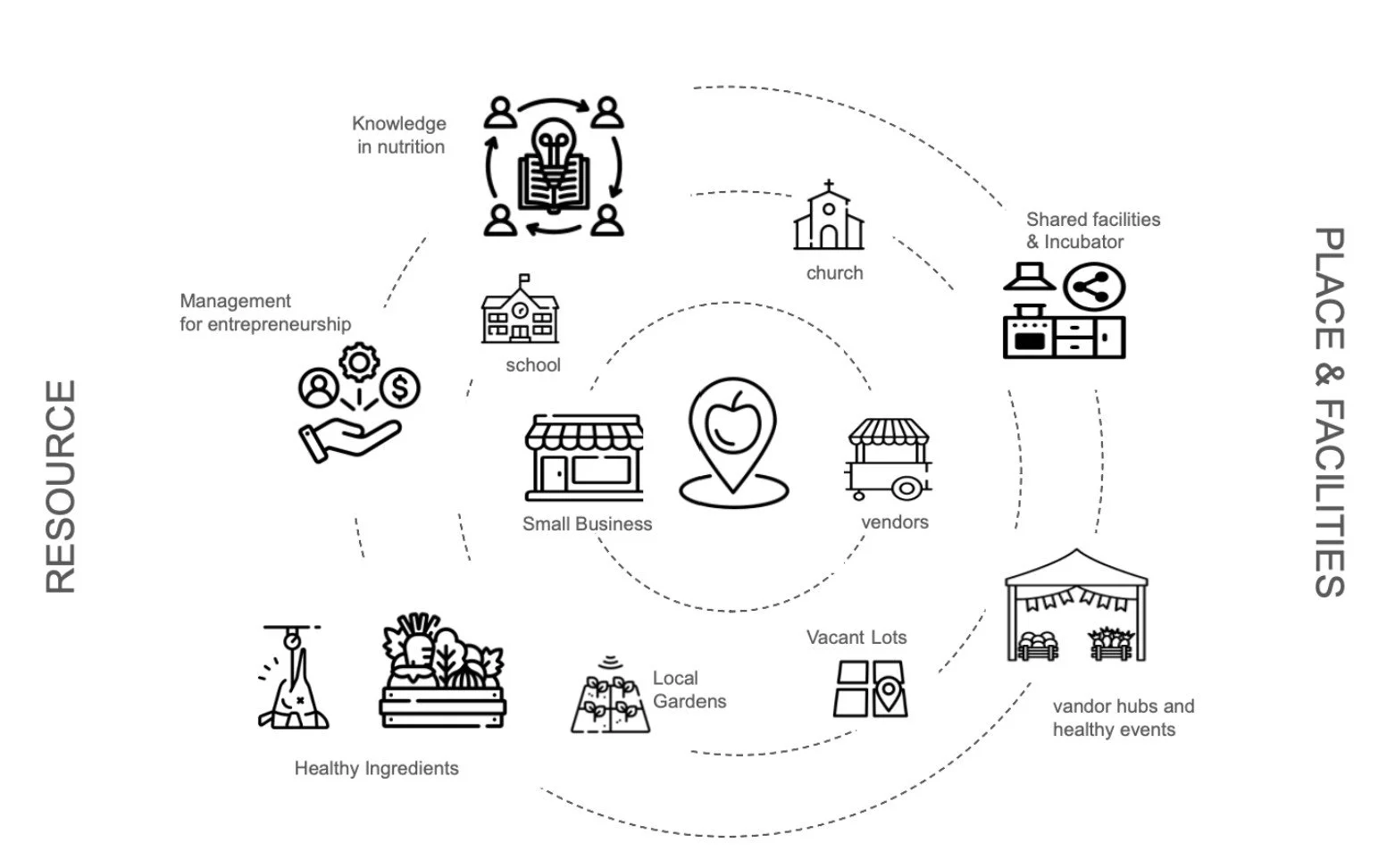 Local businesses (e.g., restaurants, grocery stores) that can participate in mentorship programs or partnerships, offering guidance and support to small vendors to help them thrive.